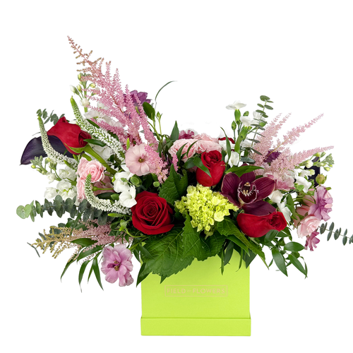 A delightful mix of reds, pinks, and whites, arranged in a loose, organic style that feels like a freshly gathered bouquet from a blooming backyard. It’s cheerful, heartfelt, and just the right amount of fancy—perfect for the mom who deserves a little extra love this Mother’s Day. Please note: Each arrangement is handcrafted with seasonal blooms, so the exact flowers may vary slightly from the photo. Rest assured, every piece is designed with care to capture the same vibrant and elegant spirit. *While supplies last Available for delivery throughout South Florida, including Davie, Boca Raton, Fort Lauderdale, Miami, and surrounding areas. APPROXIMATELY 19 H X 21 W