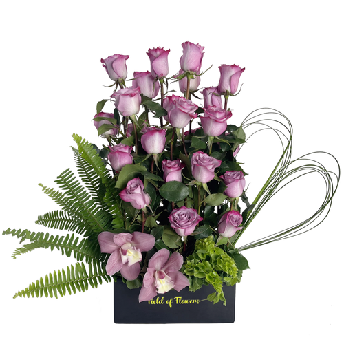 A stunning fusion of romance and elegance, Lavender Heart is a breathtaking arrangement that combines the deep, rich hues of 24 purple roses with the exotic beauty of Cymbidium orchids. Each petal of the purple roses symbolizes admiration and enchantment, while the delicate Cymbidium orchids add a touch of grace and mystery. Perfect for expressing love, appreciation, or a heartfelt gesture, Lavender Heart is more than just flowers—it’s a statement of affection, wrapped in nature’s finest beauty. Whether it’s for Valentine’s Day, an anniversary, or just because, this arrangement will steal their heart away. **Flowers are subject to availability. APPROXIMATELY: 21″H X 22″W